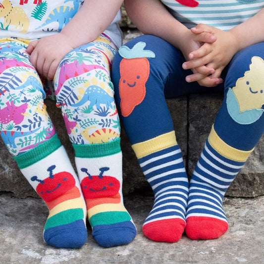 Set of 2 Organic Baby & Toddler Caterpillar & Striped Grippy Socks