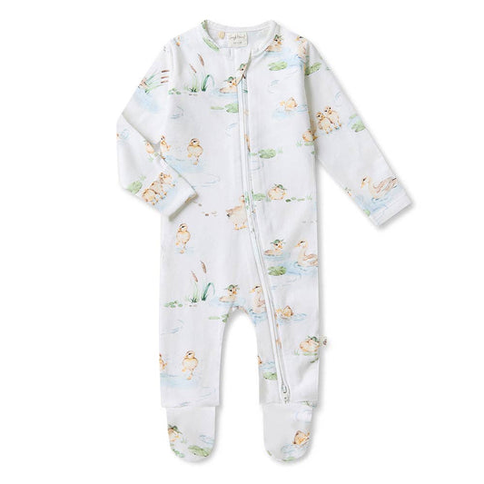 Organic Zip Footed Baby Sleeper - Duck Pond