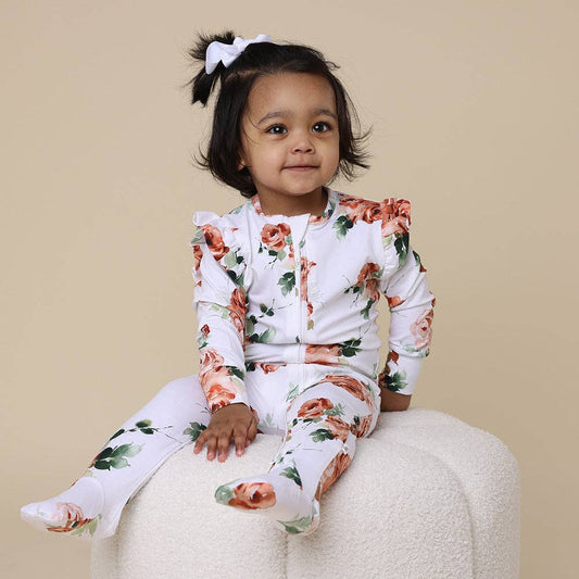 Organic Ruffle Sleeve Zip Footed Baby Sleeper - Rosebud