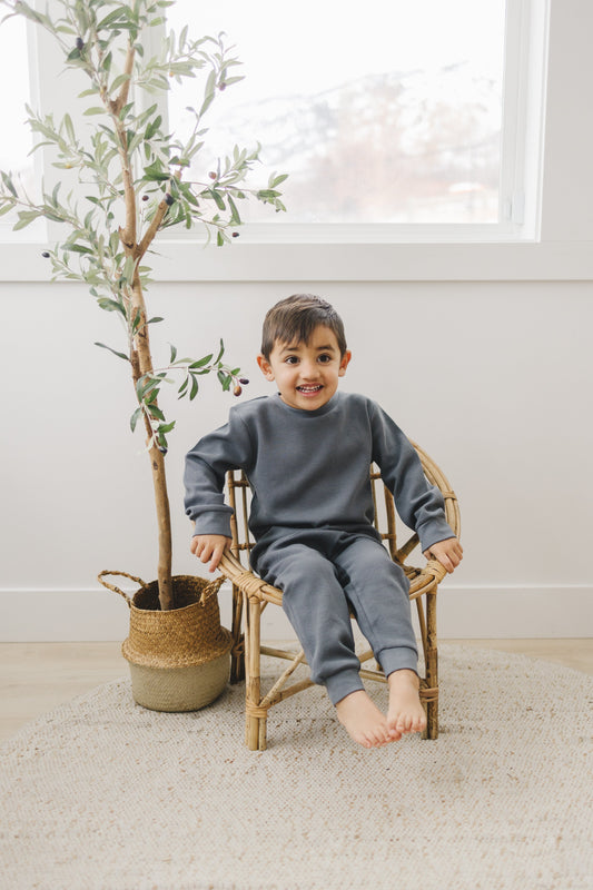 Organic Waffle Knit Baby & Toddler Top - Charcoal