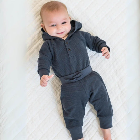 Cole Organic Waffle Knit Hooded Baby Bodysuit - Navy
