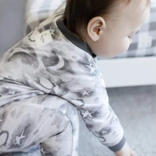 Organic Baby Zip Up Footed Sleeper - Cloudy Night Moon & Stars