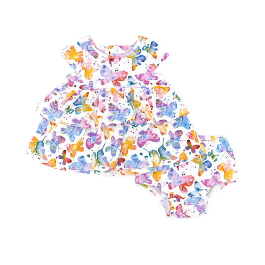 Organic Butterfly Layered Baby Dress w/ Bloomers