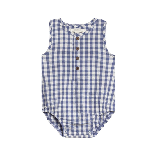 Organic Seersucker Baby Bubble Romper - Marino Gingham