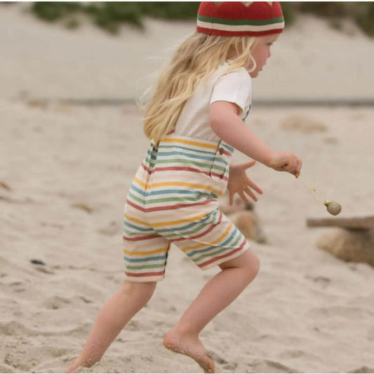 Organic Toddler Overalls - Rainbow Stripe