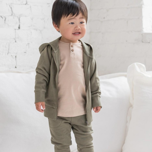 Organic Cotton Baby & Toddler Hooded Jacket - Olive