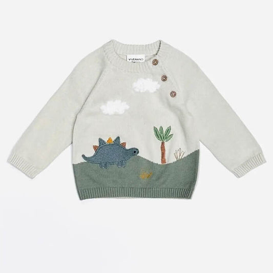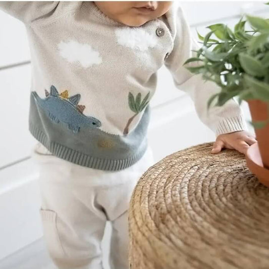 Dino Applique Button Baby Pullover Organic Sweater