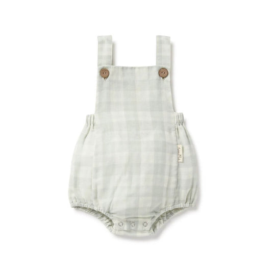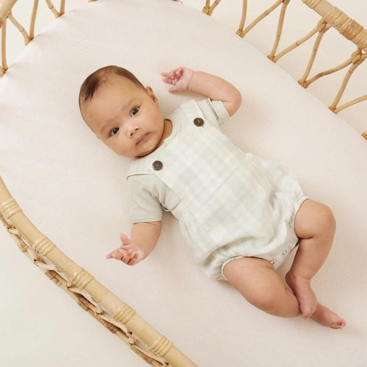 Organic Baby Gingham Overalls - Sage