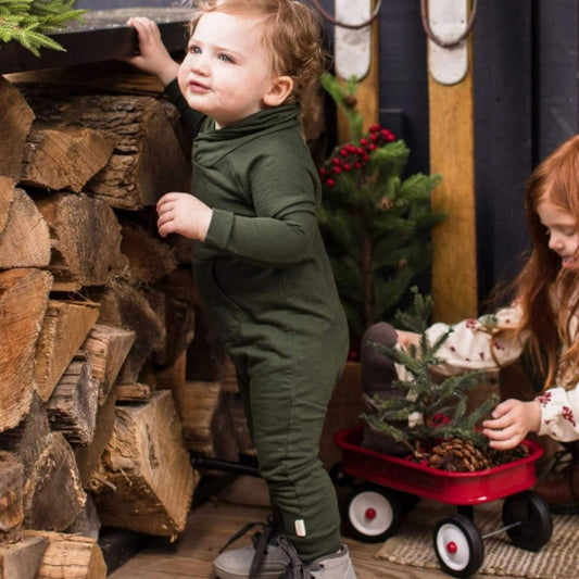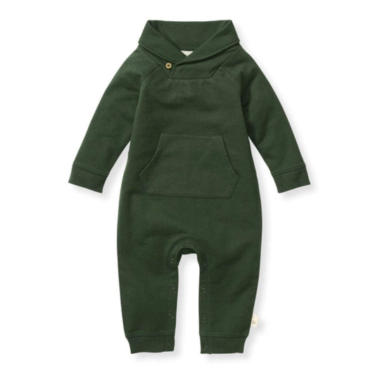 Organic Baby Shawl Collar Jumpsuit - Pine Green