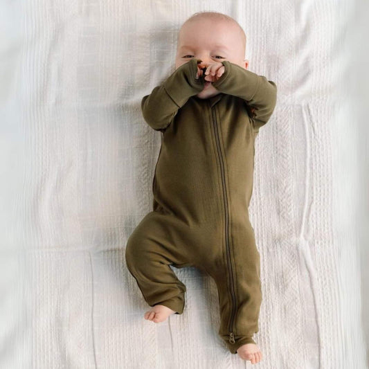 Organic Baby Footless Zip Romper - Olive