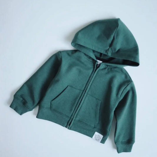 Organic Cotton Kid Zip Hoodie - Forest Green