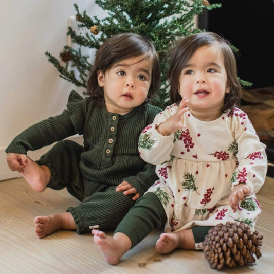Shop for the perfect holiday finery, Christmas jammies, and outfits at Young Eden. These organic baby and kid holiday outfits and clothing sets will get your family through the holiday season looking their best. Made with organic cotton that is super soft, always comfortable, and hypoallergenic for your little one. Sustainable kids clothing is better for your child, and the planet too.
