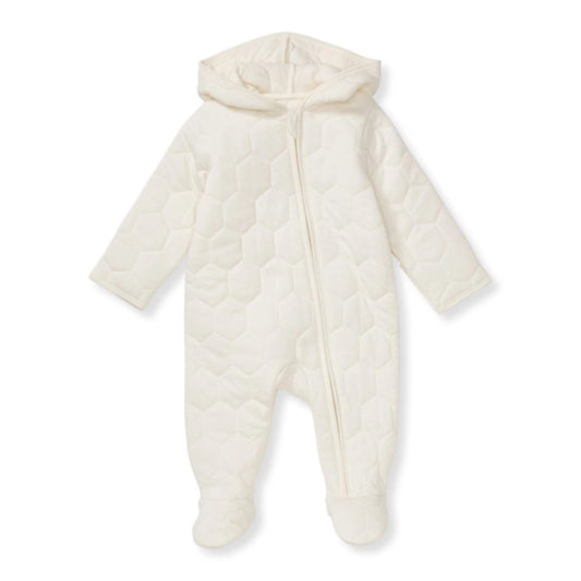 Organic Honeycomb Quilted Baby Zipsuit - Frost White