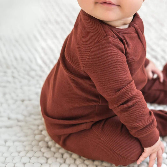 Peyton Organic Knit Ribbed Zipper Baby Sleeper - Garnet