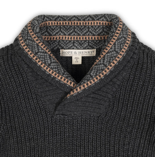 Boys Organic Textured Shawl Collar Sweater - Navy