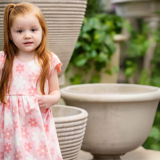 Organic Flutter Sleeve Toddler & Kid Dress - Pink Flowers