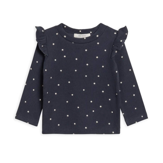 Gaby Organic Ribbed Ruffle Long Sleeve Toddler Top - Mini Polka