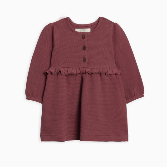 Nina Organic Waffle Knit Ruffle Waist Toddler Dress - Mulberry