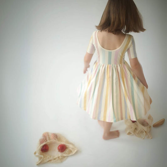Organic Cotton Short Sleeve Twirl Dress - Pastel Stripes