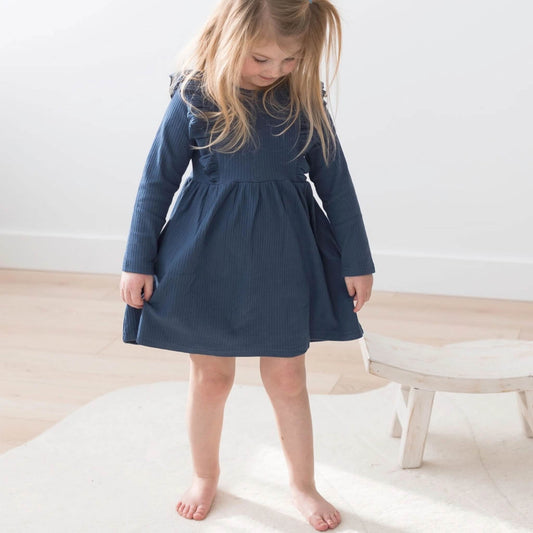Organic Baby & Toddler Ribbed Flutter Dress - Navy