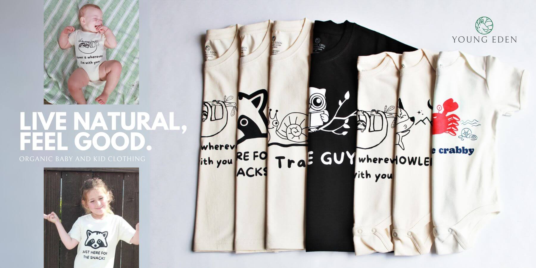 Young Eden organic baby and kid clothes are made with original designs created by real moms. All of our clothes are sustainably and ethically sourced in a Fairtrade certified farm in India, Chetna Organic. Our fabrics are 100% GOTS certified organic cotton for nontoxic and hypoallergenic apparel that's kinder on delicate skin and our planet too.
