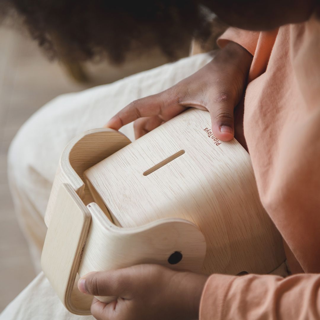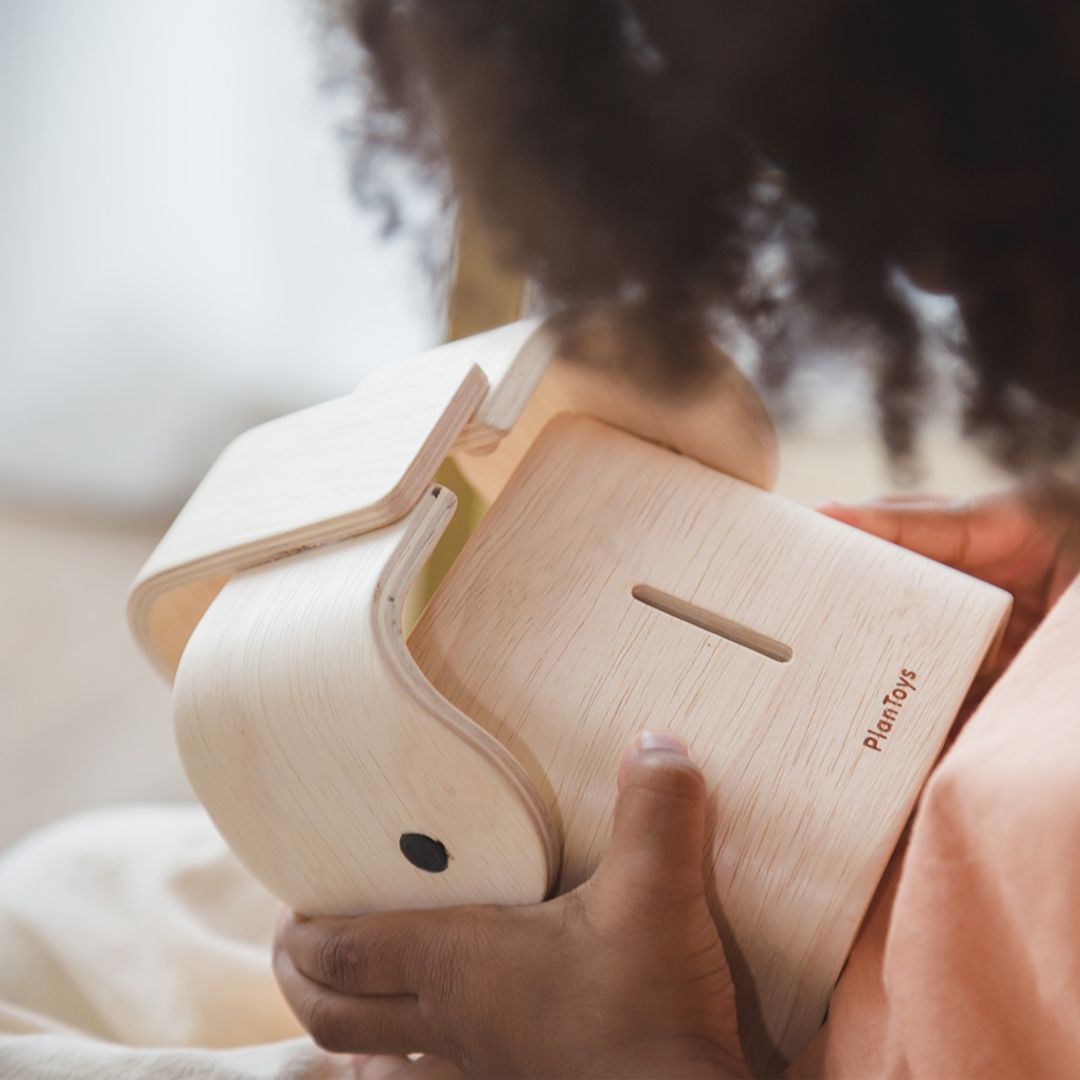 The beautifully-designed Elephant Bank serves as a nice piece of decor in any room! The bank helps motivate children to save money and learn math skills while also enhancing their fine motor skills. Put a coin into the slot and raise the elephant's head up to let the coin drop.
