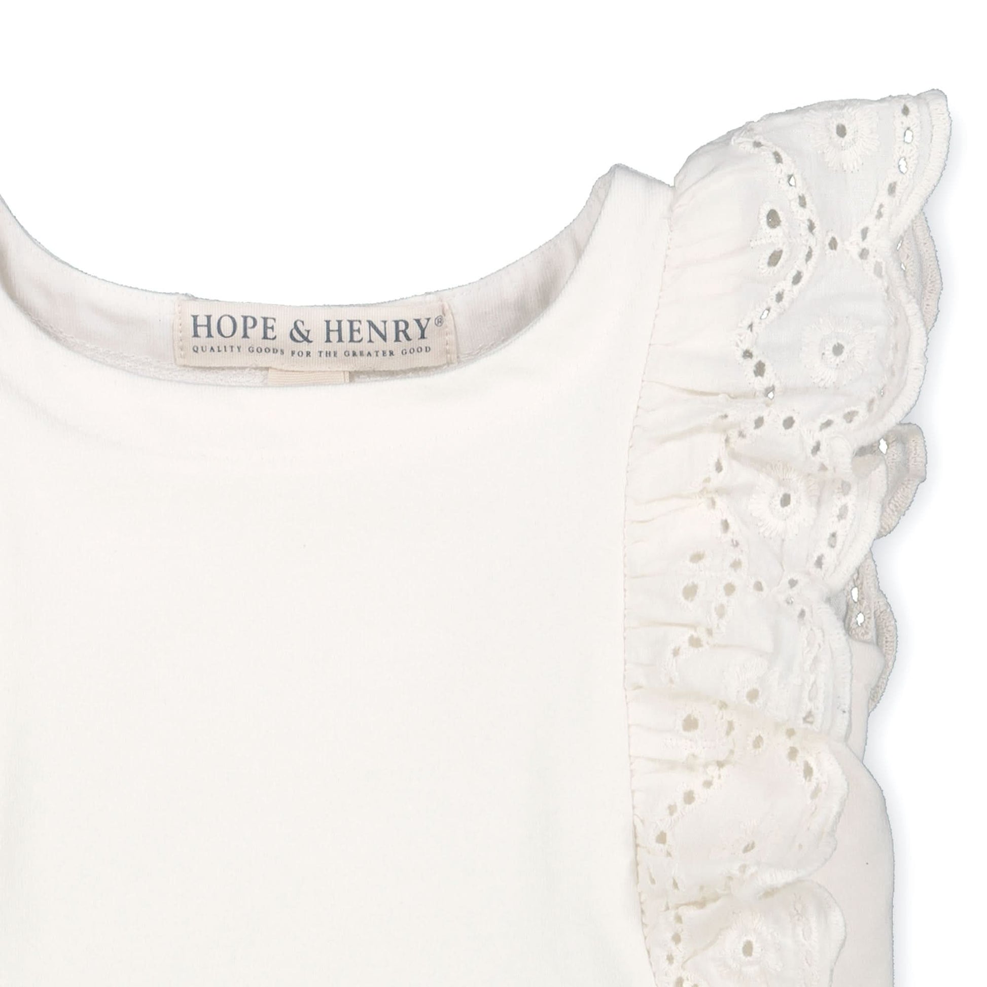 With pretty ruffles in a soft and comfortable organic cotton knit fabric, this is the top your baby girl will want to wear with everything. Features organic cotton eyelet ruffle details that flow beautifully from front to back, all in an easy pull on silhouette for her.