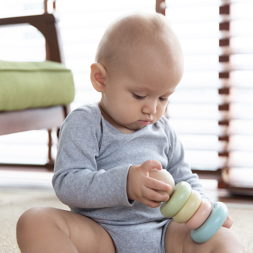 Develop early fine motor skills and start learning how to differentiate between various sizes and colors. For advanced play, time your child as they stack each ring properly!