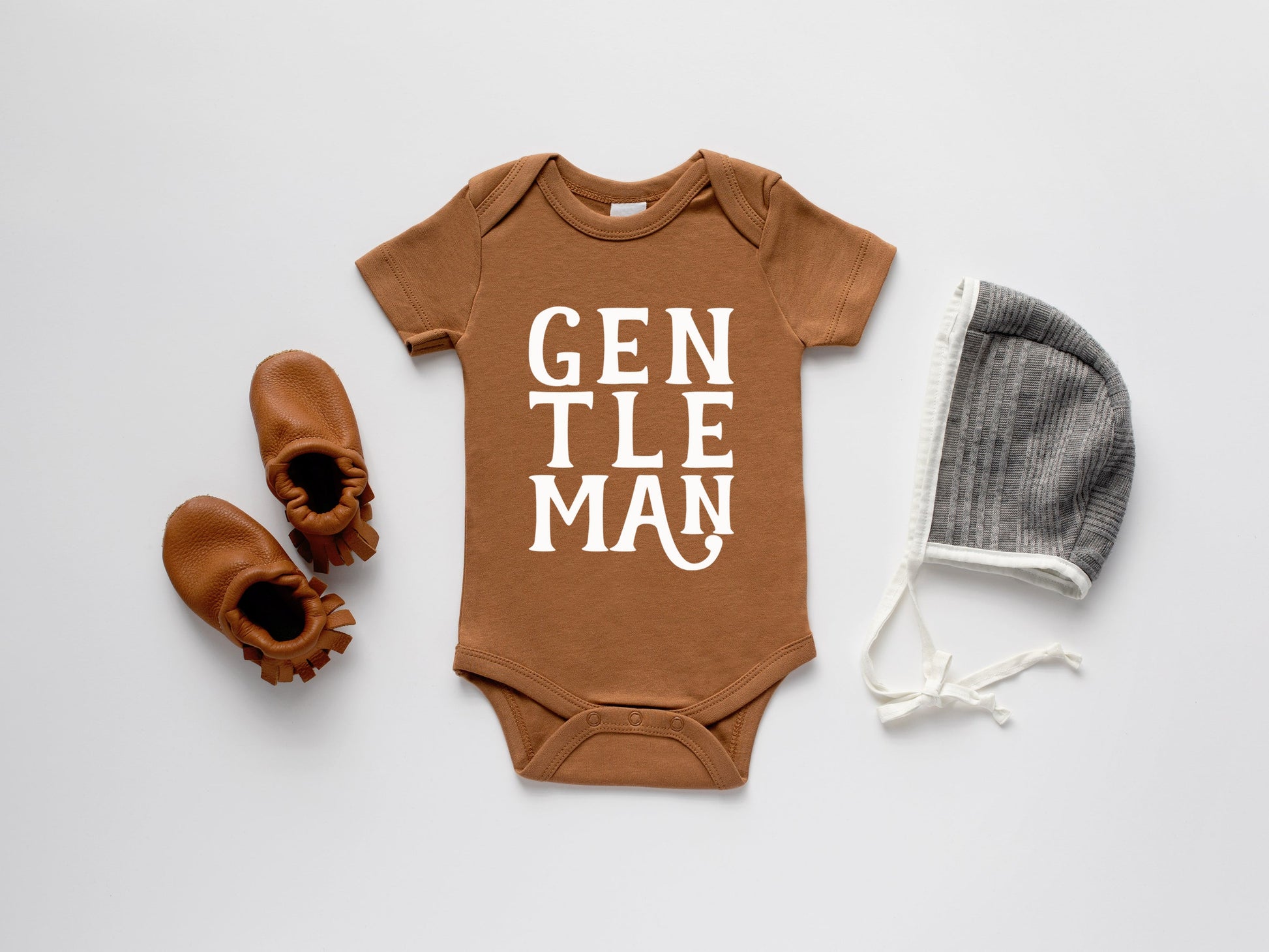 Celebrate the classy little guy in your life! This super-soft, 100% organic cotton outfit features modern typography on a luxe cream, gray, or camel colored bodysuit - designed with love and screen printed in-house. Short and long sleeve options.