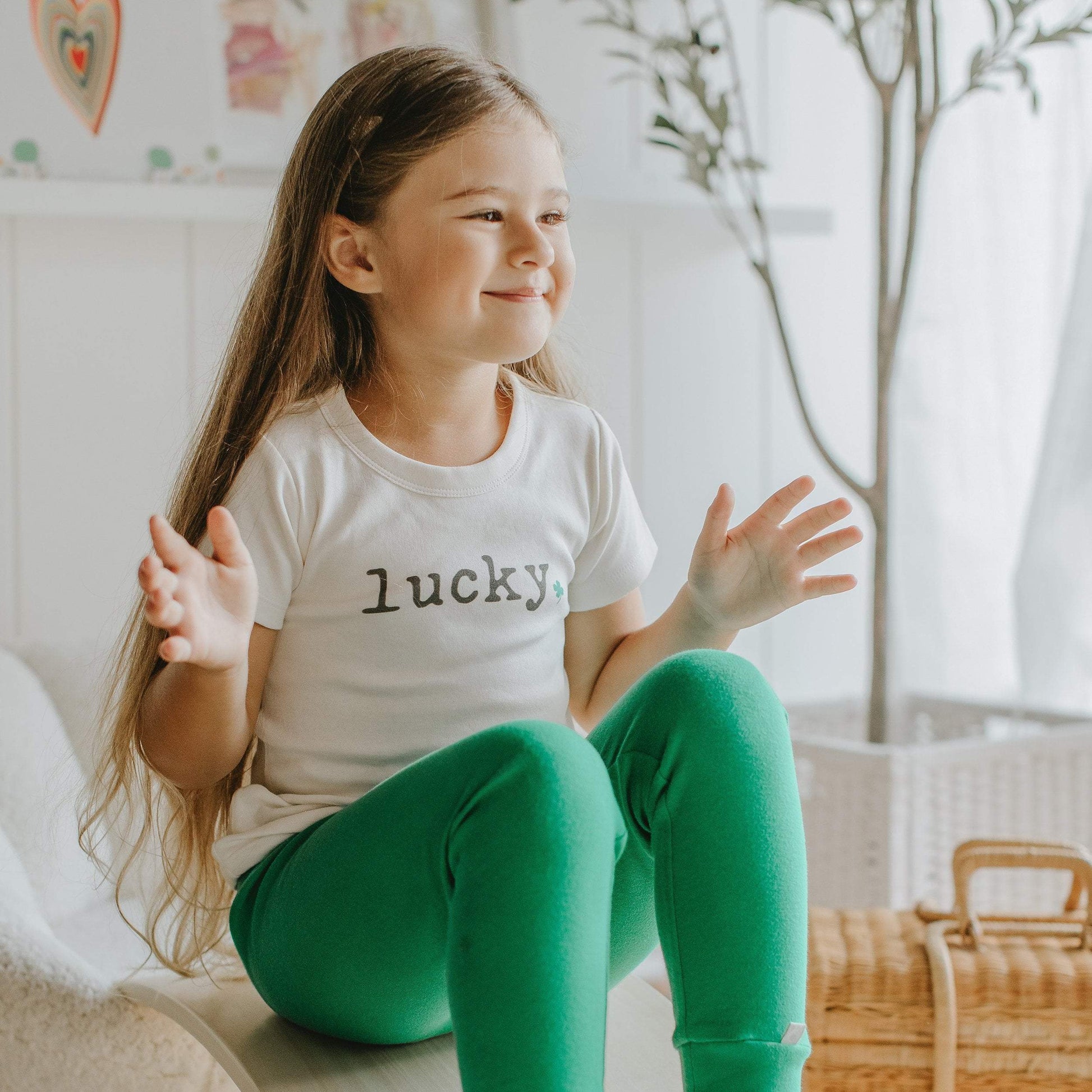 Do you know a lucky kid? Maybe you have one in your house! Well, we have just the thing to make them feel special any day of the week: our "lucky" graphic tee. Made of buttery soft organic cotton, it features a vintage font and tiny four-leaf clover. Yes, this makes for a great St. Patrick's Day kids tee, but why not share the luck around all year long?