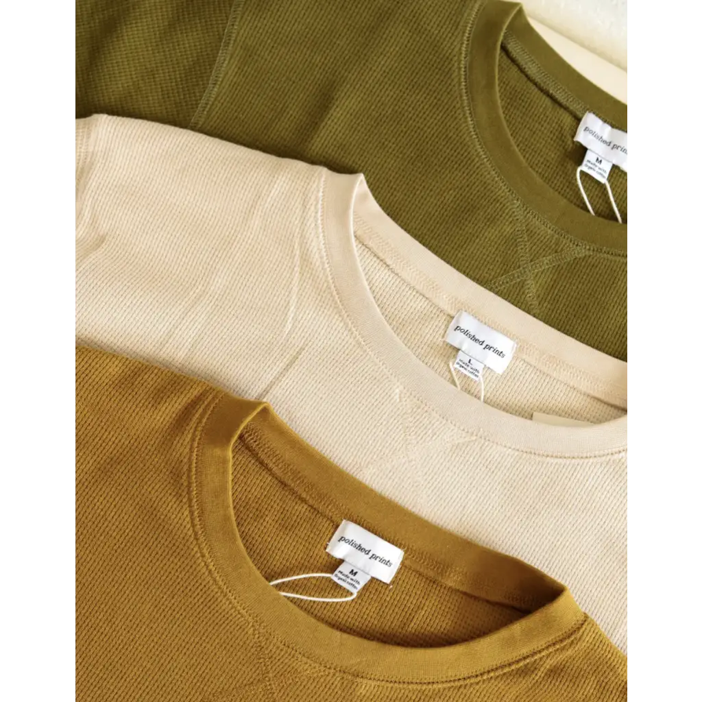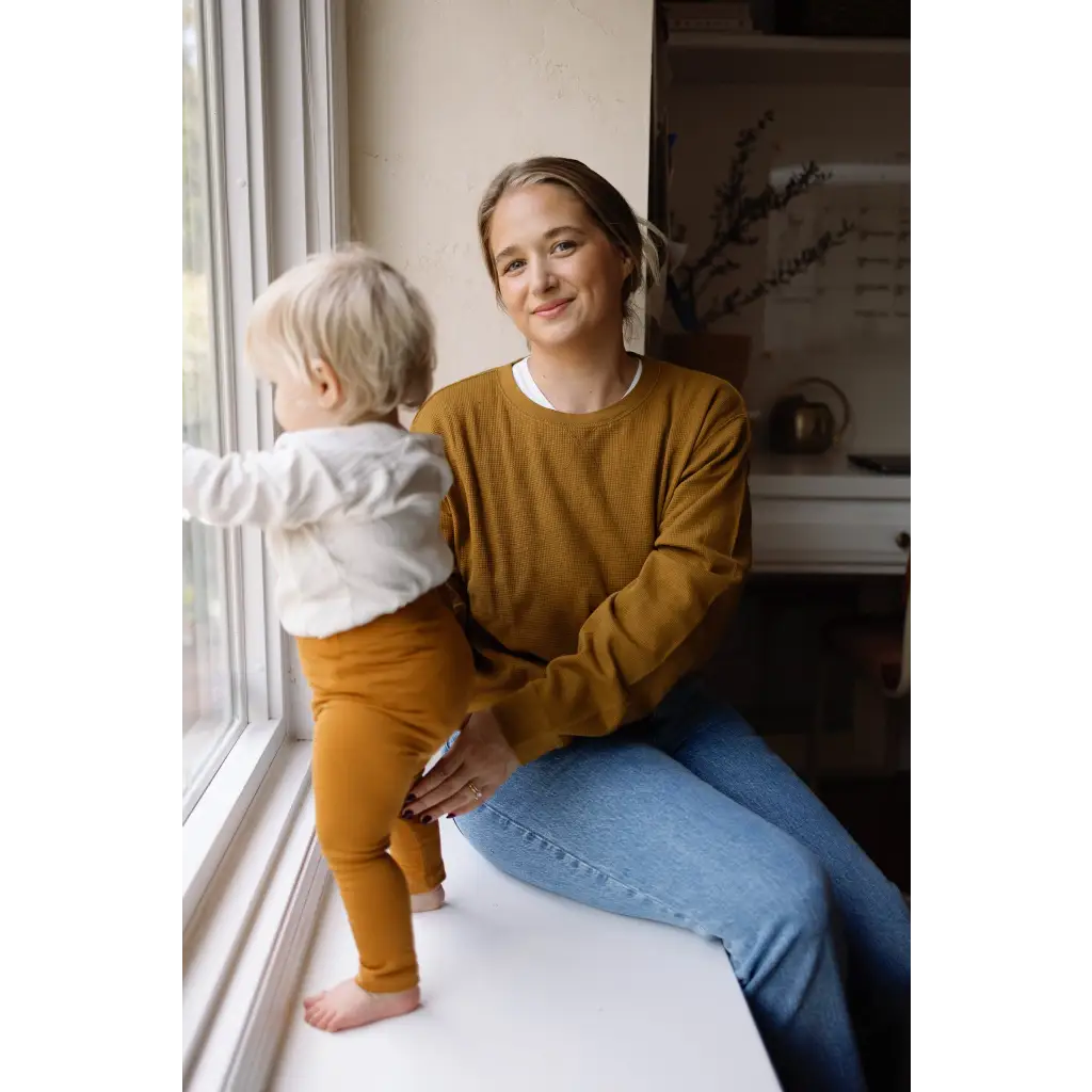 The longsleeve waffle pullover is the perfect hybrid between loungewear and everyday apparel. It's lightweight material makes it a great layering piece, while the casual nature makes it ideal to wear as is. The top is simple, transitional and classic - perfect to wear across all seasons.