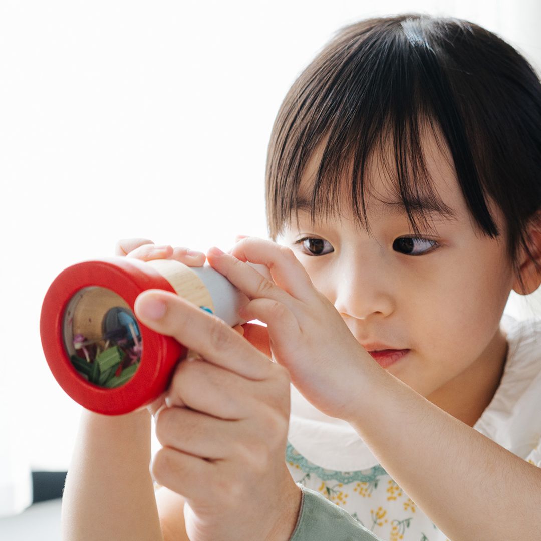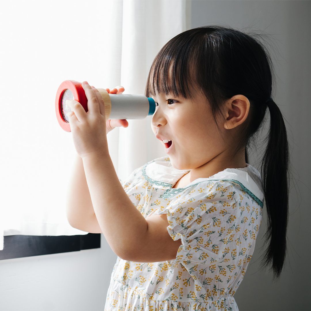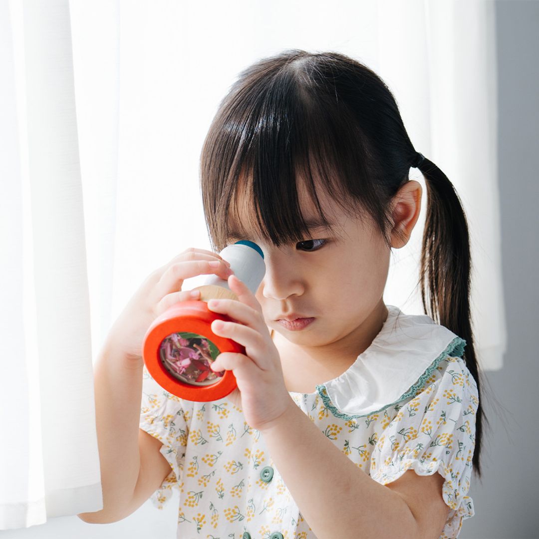 View the world through an artistic lens with the wooden Kaleidoscope! Little ones can put their favorite objects inside and experience a swirling explosion of brilliant colors. They can also explore objects around them and see what they discover through the lens. As educational as it is entertaining, this kaleidoscope fosters creativity, imaginative thinking and curiosity.