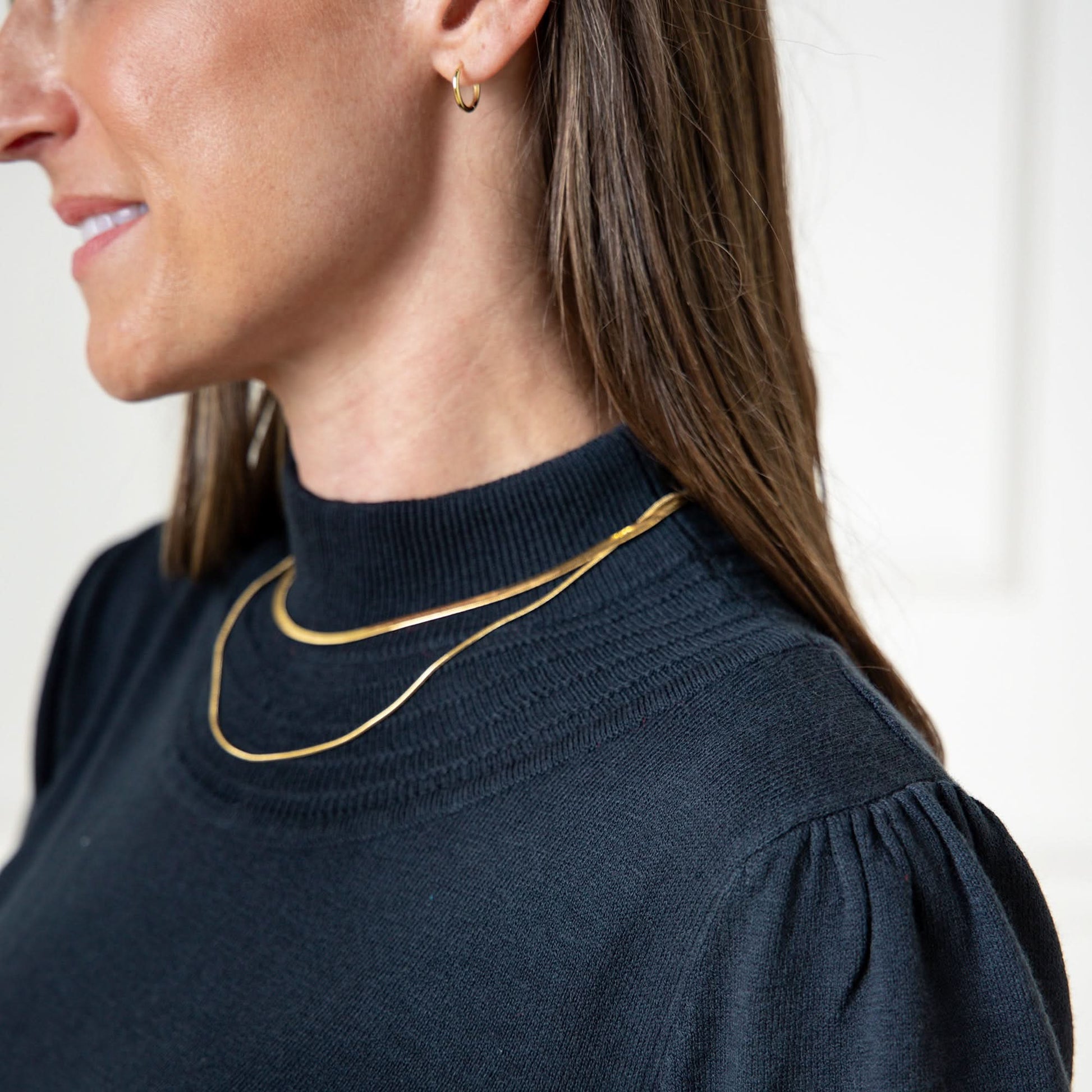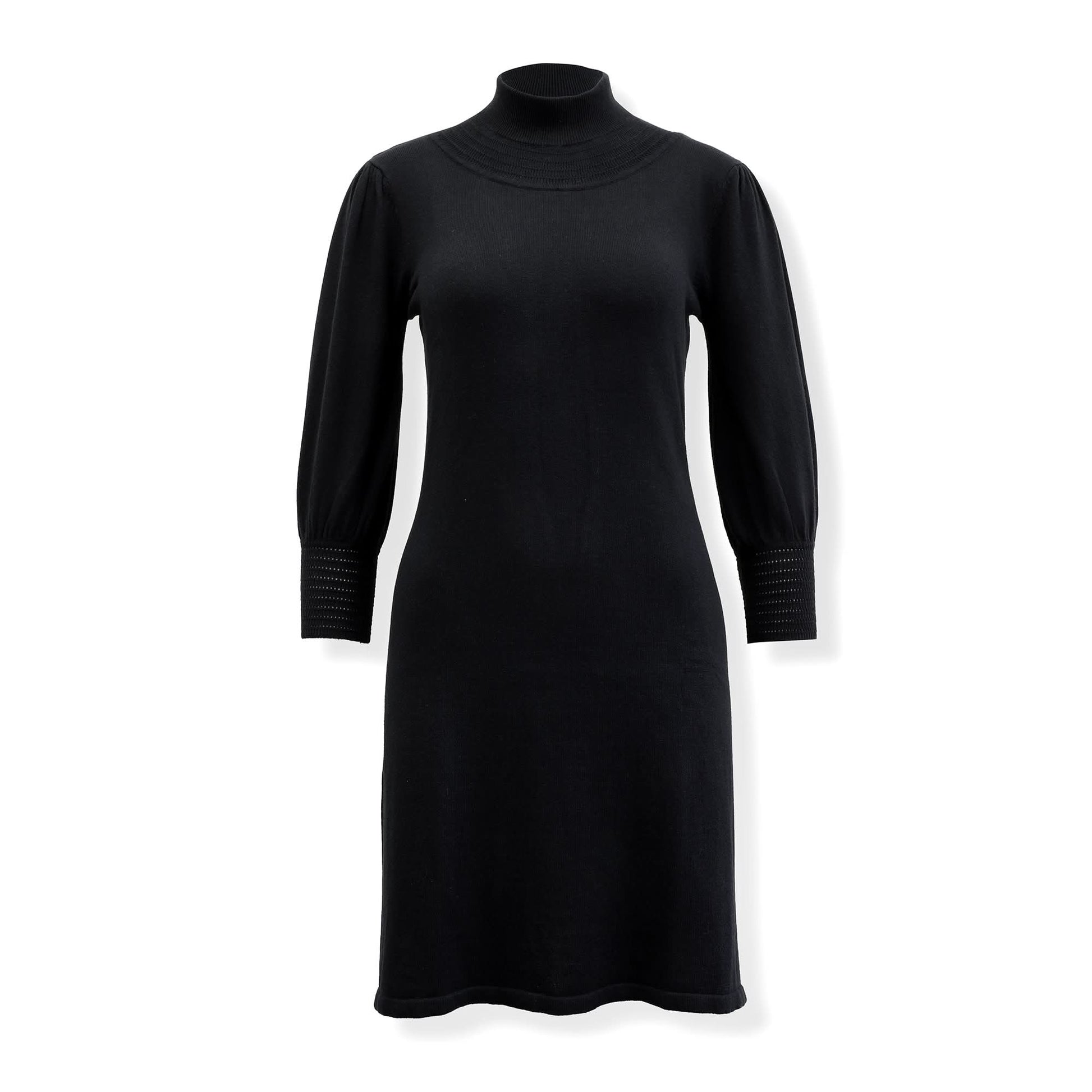 The epitome of effortless chic. This sophisticated women's sweater dress in soft organic cotton exudes timeless charm. Features a super flattering shape, a mock neck, and romantic belled sleeves. A special stitch surrounds the neckline and cuffs for that extra touch.