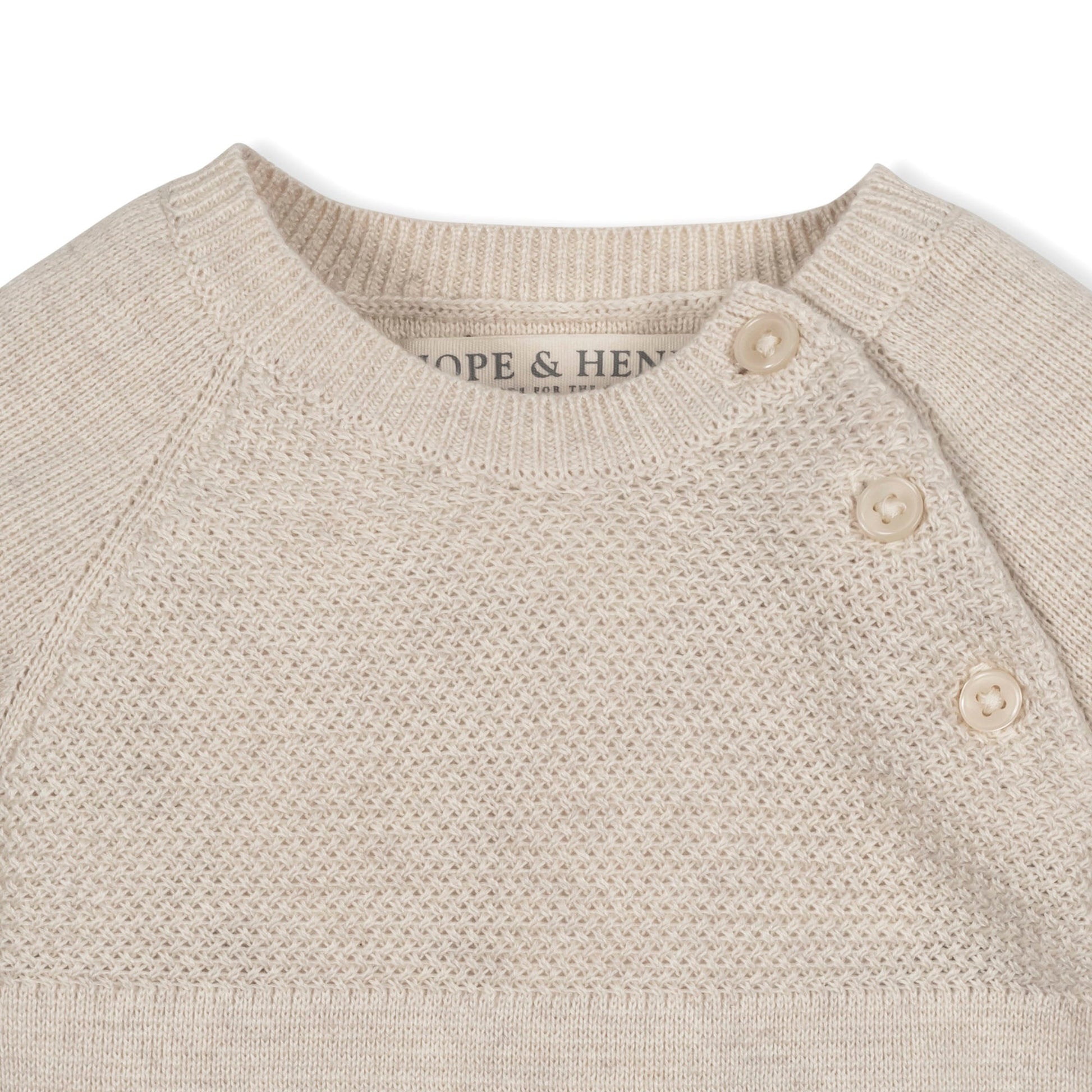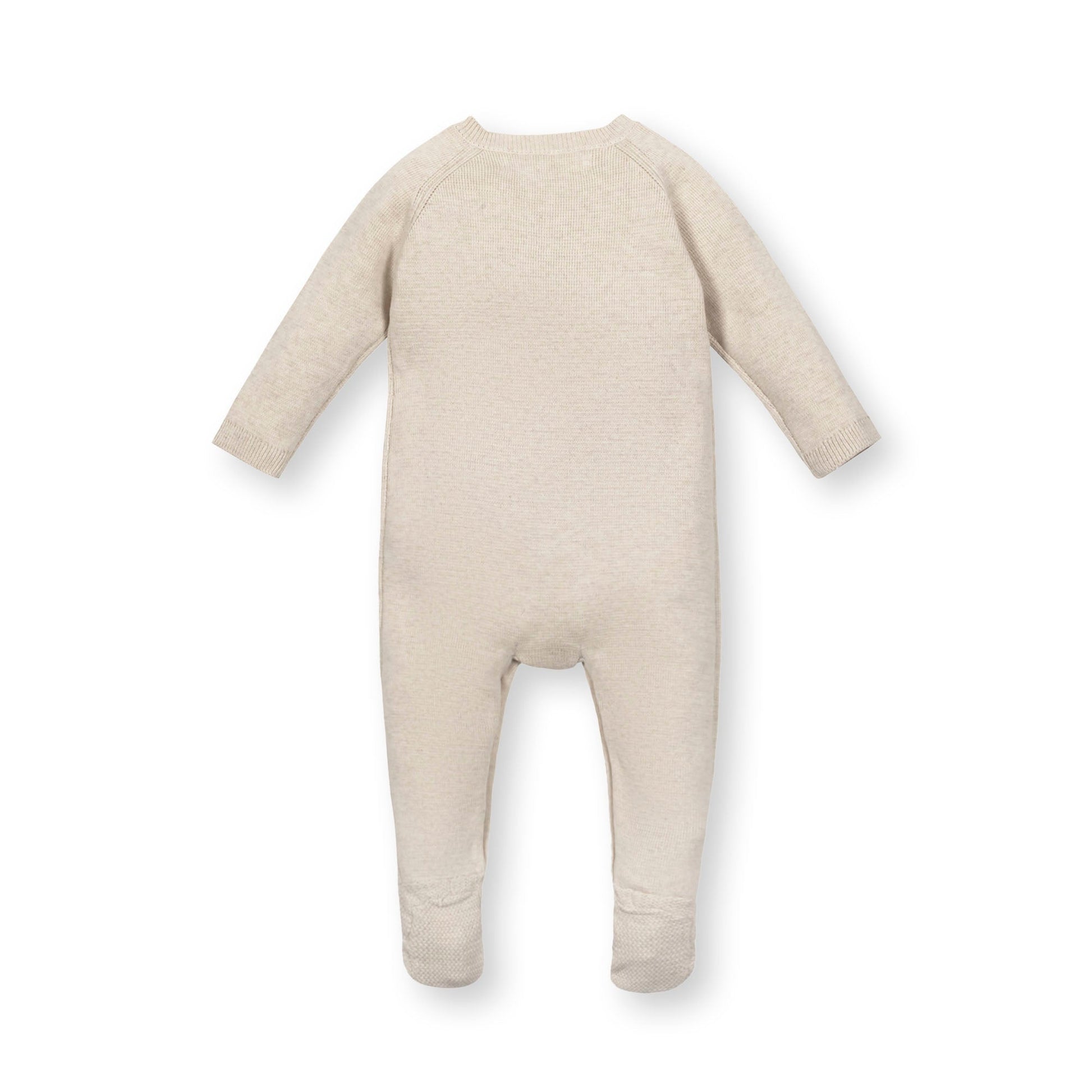 A delicate textured stitch at the bodice sets this sweater romper apart from the rest. Crafted from luxuriously soft organic cotton, this one-piece features raglan sleeves, footed legs to keep baby warm, and button closures at the shoulder and inseam. An easy, comfortable, and beautiful outfit in one. Makes a great baby gift or heirloom piece for your family.