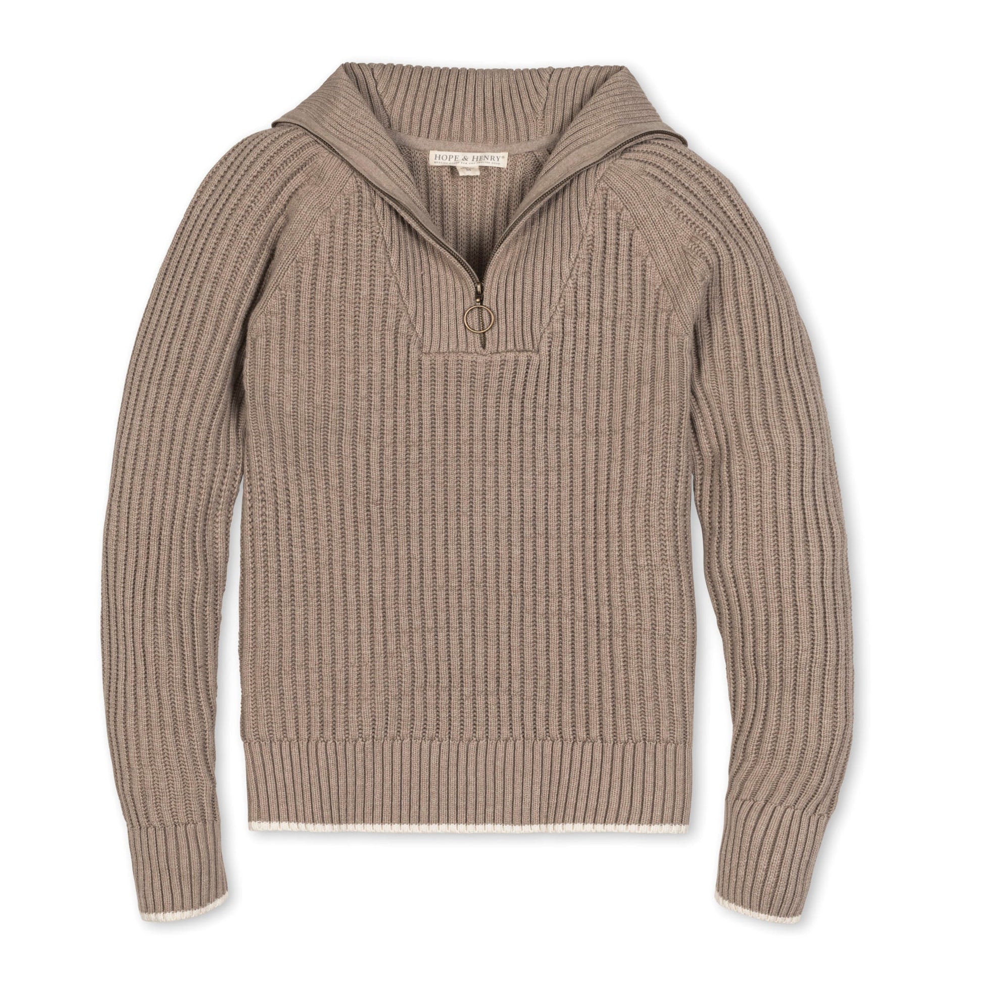 You’ll want to wear this irresistibly cozy women's sweater all season long — the lofty cardigan stitch and casual cut are perfect for wrapping up in. Crafted from soft organic cotton, this sweater features a rib knit mock neck that can be unzipped and folded over. The perfect piece for crisp cool mornings.