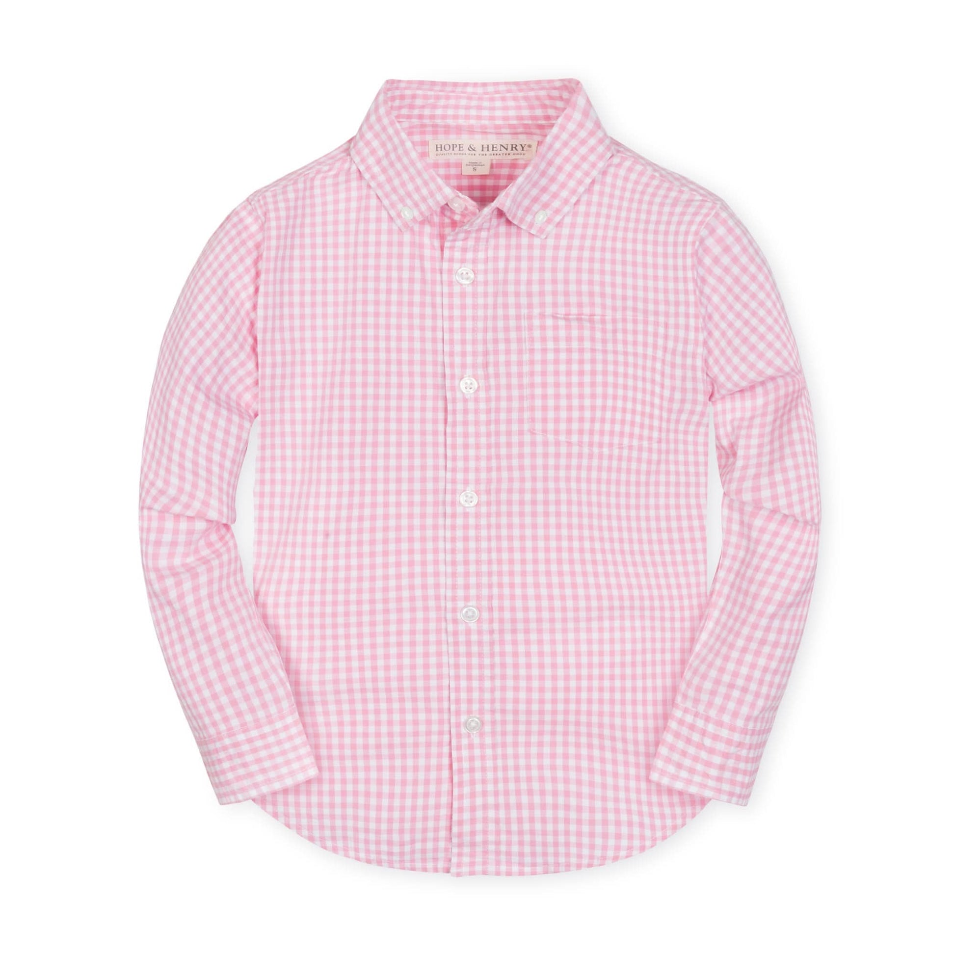 This classic boys long sleeve button down shirt is cut from soft organic cotton poplin with a hint of stretch - because basics don't have to be boring. Features classic styling that makes it so easy to dress up or down, like buttons at the center front and a functional chest pocket.