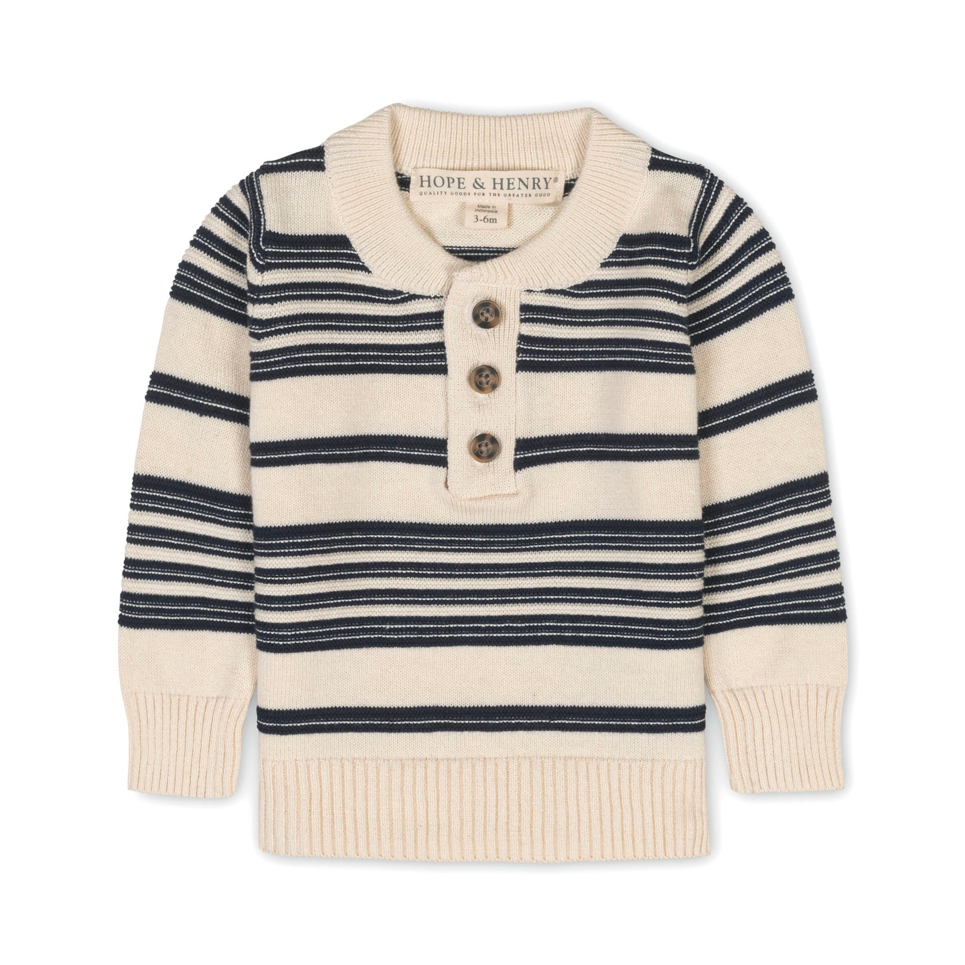 Baby Boy Organic Striped Sweater Henley with Elbow Patches