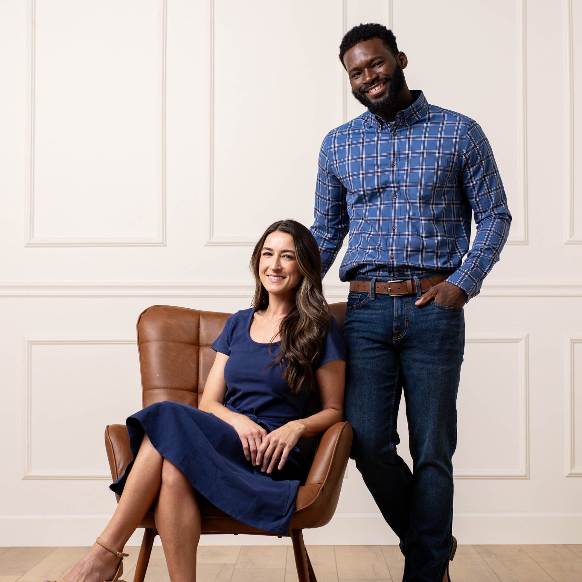 An easy fit and flare silhouette and comfy stretch-blend organic cotton make this universally flattering women's dress a spring and summer staple. Features short sleeves, a rounded neckline, and a faux waist tie for that feminine touch. Waist tie can be worn to the front or the back for versatility of looks!