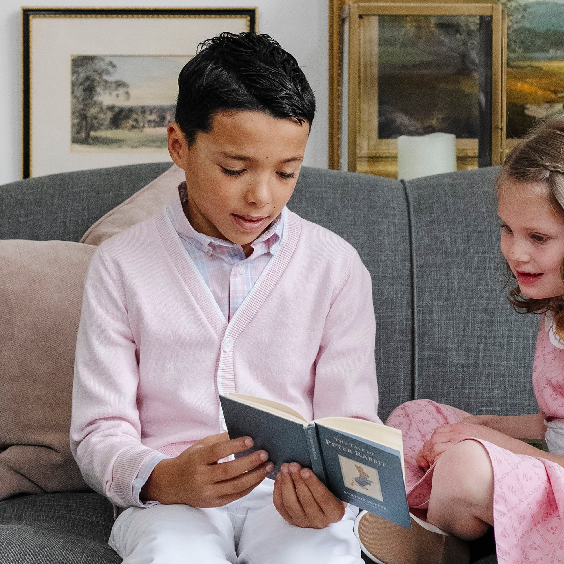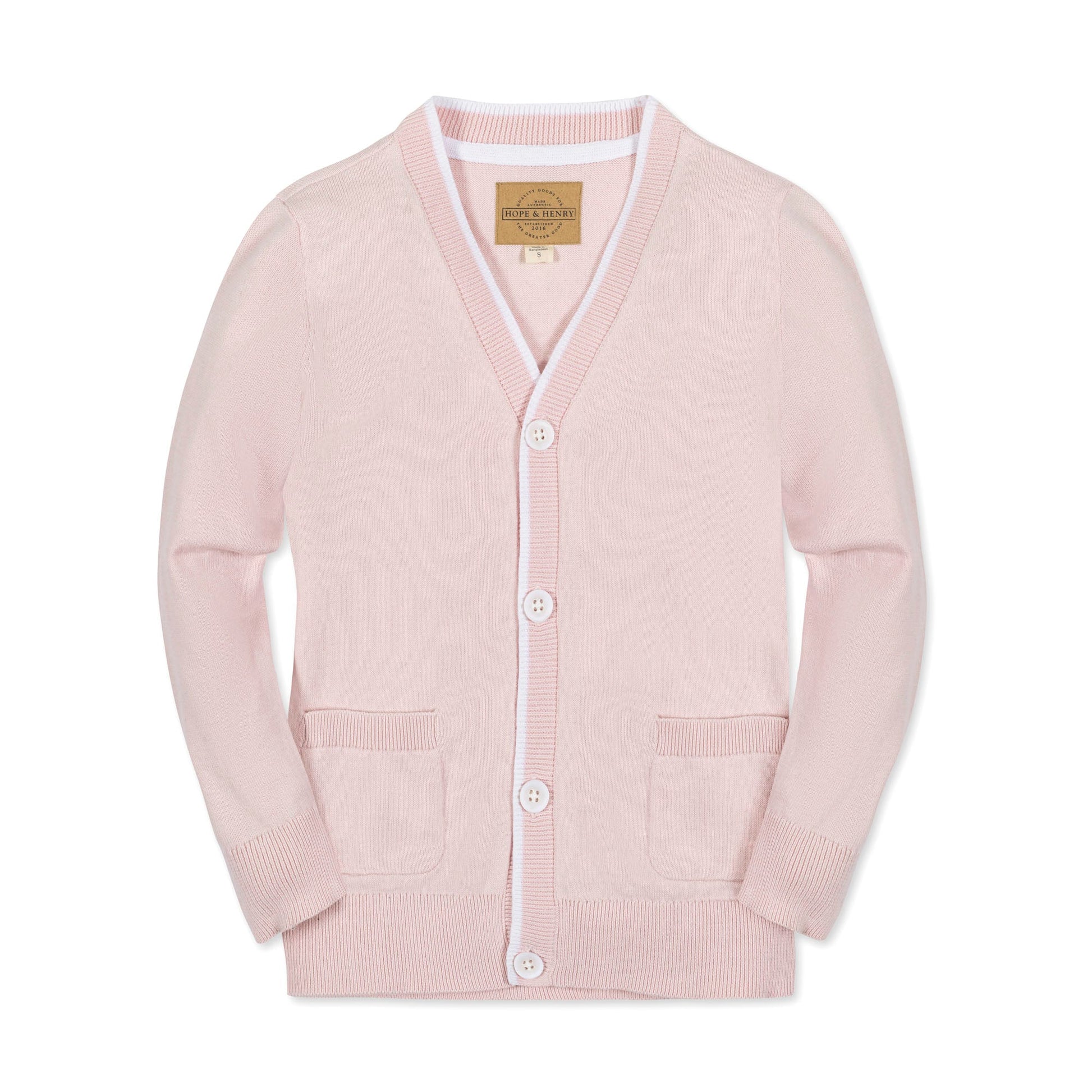 This handsome fine gauge boys cardigan is a new version of a timeless classic. Knit in our signature soft organic cotton, it features a button front closure, contrast tipping along the rib trim, and two front pockets. Layers beautifully over organic cotton button down shirts for a look he'll love.