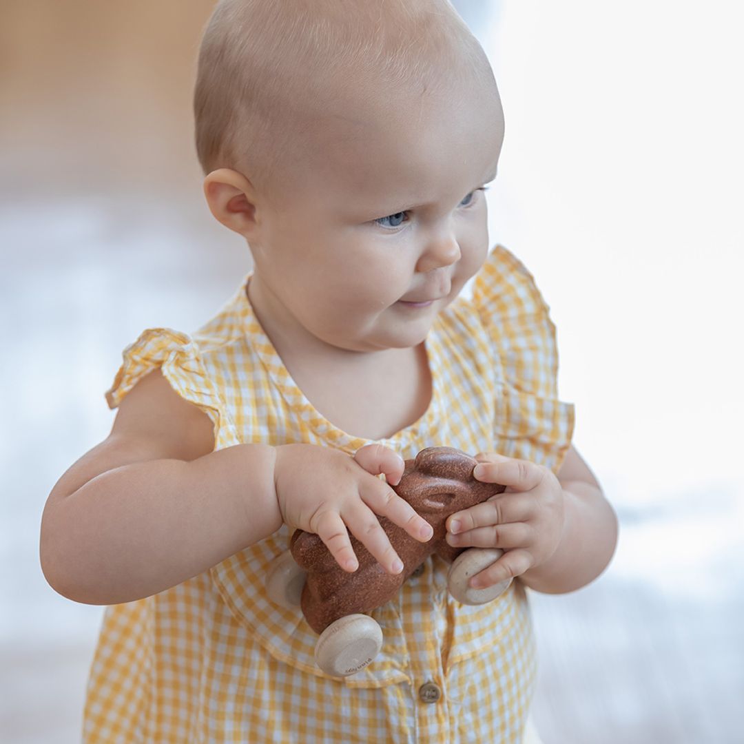 Hop alongside this happy bunny! With a soft touch and an energetic design, children can easily grab and play with the push-along bunny and incorporate into imaginative play scenarios. Through play, kids also develop fine motor skills and gain exposure to cause-and-effect relationship.