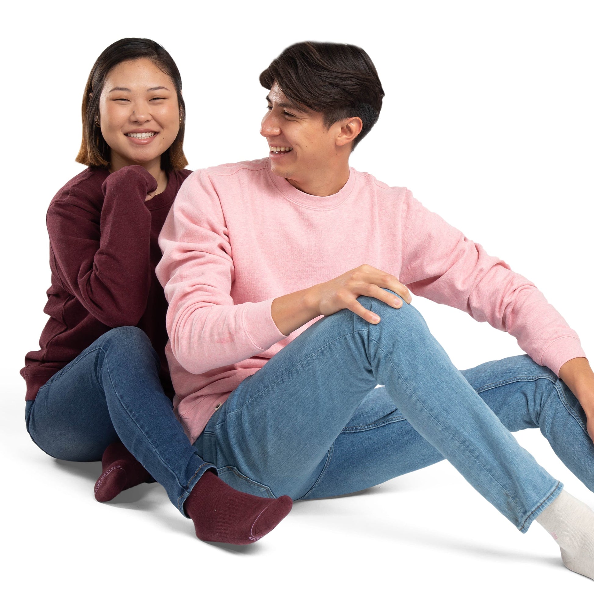 Brushed on the inside for extra softness. Gender neutral slim fit crew sweatshirt, designed to fall at the hip. Cause-themed embroidery on left cuff. Pre-washed to minimize shrinking.