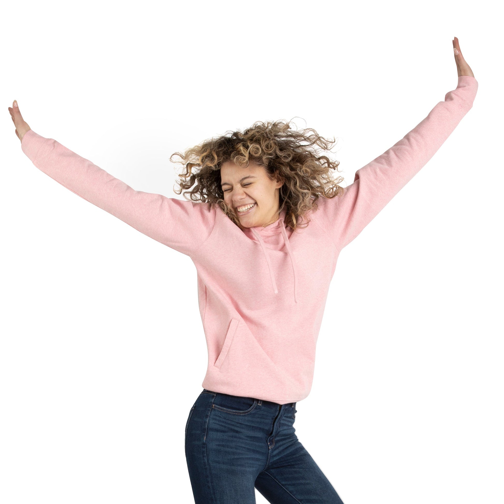 Think pink! This soft pink, organic cotton adults hooded sweatshirt features a heart embroidery and silky aloe vera textile pockets. Save the boobies, and keep them warm while you’re at it.
