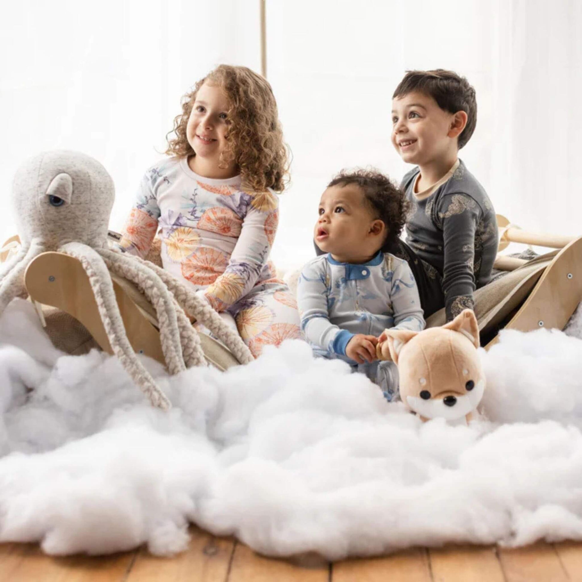 Bring the fun in with these adorable surfer pups organic cotton toddler and kid pajamas. Featuring a whimsical ocean print, GOTS-certified breathable fabric that's gentle on sensitive skin. Long sleeve and pant with an encased elastic waistband.