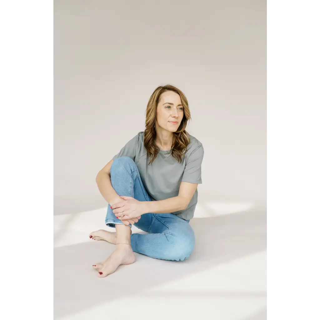 Say hello to "The Mom Crop" - a boxy tee designed to hit at the right place, making it a stylish and casual top for women of all ages. Rock it as a front tuck or, for those with a longer torso, let it hit right at the top of your mom jeans.