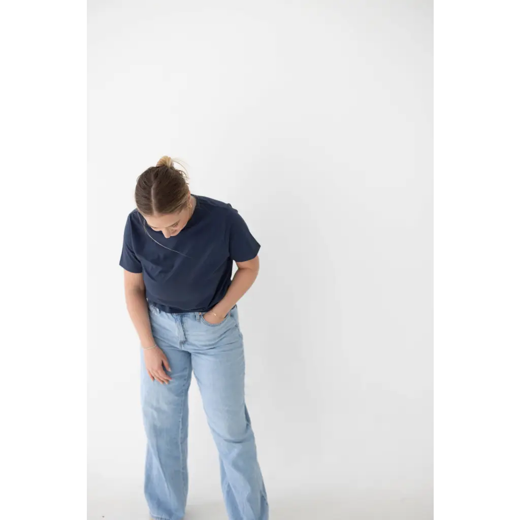 Say hello to the Mom Tee - a classic vibe with an updated fit making it versatile and flexible for whatever season you're in. Made with a hint of spandex, it stretches where you need it too so it can grow with your body.